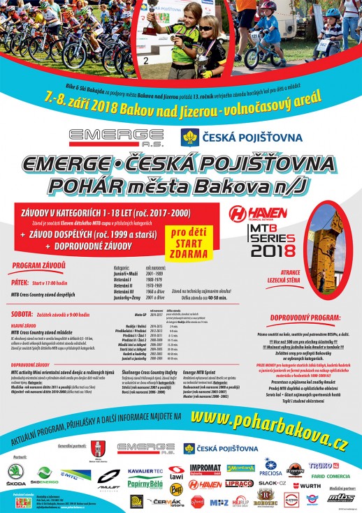 Jako každý rok v září i letos zveme všechny Bakajďáky a jejich ratolesti k účasti na nejlepším dětském sportovním dni minimálně v oblasti centrální galaxie, který se také uskuteční v samotném centru galaxie, a to ve Volnočasovém areálu v Bakově nad Jizerou (dříve koupák) dne 8.9.2018 od 9:00 hod. O den dříve od 17 hod. závodí dospělí, dokonce i někteří z nás. Přijďte zafandit (nebo pomoct)... ;-) Více informací či případná registrace k závodu, který je jako vždy pro děti zdarma, na webu www.poharbakova.cz.
