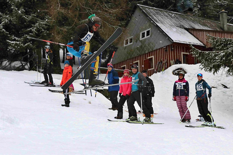 Máme za sebou 19. ročník oddílových závodů. Nutno říci, že opět velmi povedený. A třebaže se nakonec sešlo nemálo omluvenek, účast nebyla zas tak nízká, jak se ještě v pátek večer mohlo zdát. Organizaci poprvé po letech nedržel v rukou předseda, a tak to v sobotu ráno chvíli vypadalo na slušnou anarchii. To když v ohlášený čas 10:00 pro začátek závodu ve slalomu ještě na stráni nebyla ani noha, natož slalomová branka. Díky tomu, že podklad na sjezdovce měl FISové parametry, jsme však všechno v pohodě dohnali a místo duchu anarchie se nad letošními závody rozprostřel veskrze duch žertovný. Už jenom pro zařazení metr vysokého skoku mezi šestou a sedmou bránu slalomu, na kterém pro pobavení publika své ambice pohřbil Pepa Suchý a který Matěj absolvoval ve stylu Jiřího Malce, zatímco Zdenda Bacil čistě na Nikolu Sudovou; pro startéra, který závodníky pouštěl na trať mohutným mácháním sovětskou vlajkou (nebo to snad byly Zemanovy trenky?); pro trochu svérázný způsob, jakým agentura Snad-se-mi-to-nerozhází zpracovávala výsledky; či pro hi-tech časomíru složenou z mrznoucích děvoček a čínského mobilu, který si v rozhodujících chvílích běžeckého závodu řekl, že už to stačilo, a jejž s precizností sobě vlastní nahradil Martin Frencl tak trochu odpočítáváním z hlavy... nebo bůhví odkud.