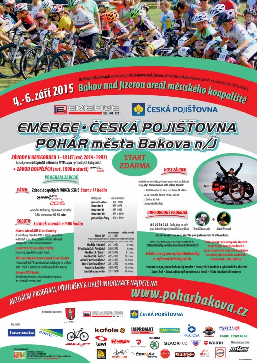 A to hlavní, závody proběhnou v areálu koupaliště v Bakově 4. a 5. září 2015. V pátek jsou na pořadu dne přípravy a závod dospělých, v sobotu pak po celý den klání mládežnická. Více informací na webu www.poharbakova.cz.