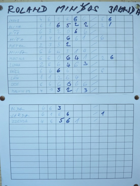 Poděkování patří Kučerovým za krásný tenisový turnaj, který se odehrál za krásného počasí v sobotu 16.6. na krásném Malém Rohozci. Nová pravidla svedla dohromady spoustu dvojic a šanci na vítězství v turnaji nabídla i tenisovým nemehlům. To ovšem nijak nesnižuje výkon Venci Berana, který díky tomu, že je větší špindíra, získal na celkovém vítězství nakonec nadpoloviční podíl. Druhým prvním byl Dan Sedy. Všichni ostatní účastníci skončili na pěkném druhém místě... :-) Děkujeme též fanouškům za krásnou atmosféru. Fotky snad již brzy.