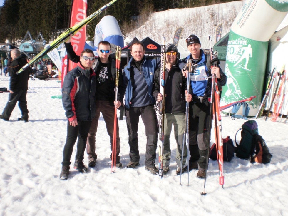 Krásné slunné počasí a rychlý, jak říká Vláďa, kulatý sníh, takový byl 57. ročník Krkonošské 70. Na start se za Bakajdu postavili čtyři borci a jeden vůl, jmenovitě Matěj, Vláďa, Šaui, Martin Tůma a Dan S. Kvůli mému padajícímu košíku, pro který jsem se několikrát musel ve sjezdu vracet, jsme na prvních 20 km prohospodařili minimálně 10 minut, což nás v konečném součtu stálo dobrých 10 míst v pořadí a čas pod 5 hodin. Můj dík patří především Martinovi za to, že měl s sebou izolepu, která problém vyřešila. I proto se závod nakonec vydařil a poměrně konstantním tempem jsme dorazili do cíle v čase 5:07 na 53. místě. Pár fotek ilustrujících, jak bylo na hřebenech hnusně, si můžete prohlédnout ve fotogalerii. Výhledy byly opravdu luxusní a trať měla parametry svěťáku - jen pro představu: cca 40 minut na Pláně, 55 minut na první bufet, 2 hod. na Pražskou, 3:20 podruhé na Pražské. GPS stroj mi naměřil rovných 67 km a převýšení cca 1900 m. Světe div se, krátká reportáž ze závodu se objevila dokonce i v hlavním zpravodajském bloku Událostí a hned v prvním záběru, který trvá dobře 1 vteřinu, můžete na startu spatřit členy týmu Bakajdy! Není o co stát, nicméně inkriminované Události najdete tady a reportáž z K70 začíná v čase cca 38:50. Výsledky závodu jsem zatím našel pouze na webu Stopy pro život. Opravdu zajímavý souboj proběhl v závodě žen na 50 km, kde rozdíl mezi první a druhou hlídkou nebyl ani 2 vteřiny!