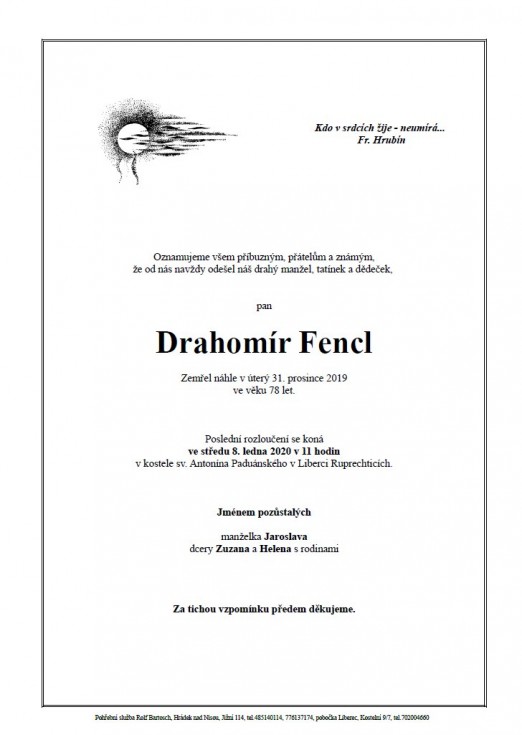 ráda bych vám do nového roku napsala něco pozitivního, bohužel... dejte si prosím za Drahoše panáka a zazpívejte mu nějakou pěknou písničku. Kdo si uděláte ve středu čas, rádi vás uvidíme.