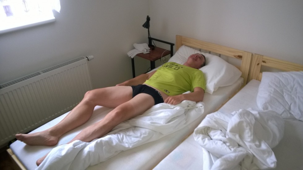 Blejt bude, az mu zejtra na 120.km nastoupim. Dneska jsme ho s Misakem nechavali, at si mysli, ze je o tridu lepší. (Na fotce chvilku předtím, nez upustil ponozku do Skalice ;-))