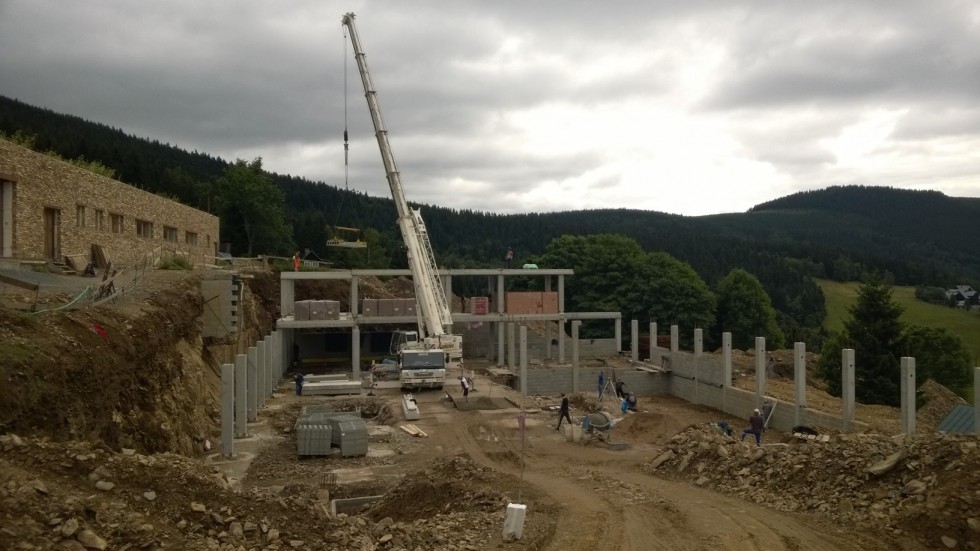 Lovčenka, jak ji neznáte. 8 m pod zemí 25 m bazén + brouzdaliště + sauny + tělocvična, v patře restaurace pro 250 lidí + grande Sonnenterasse.